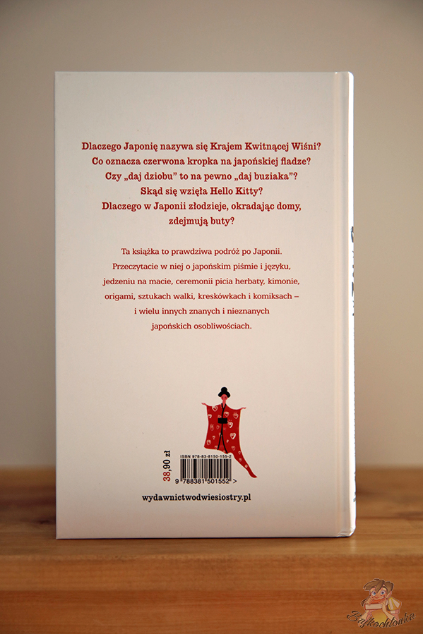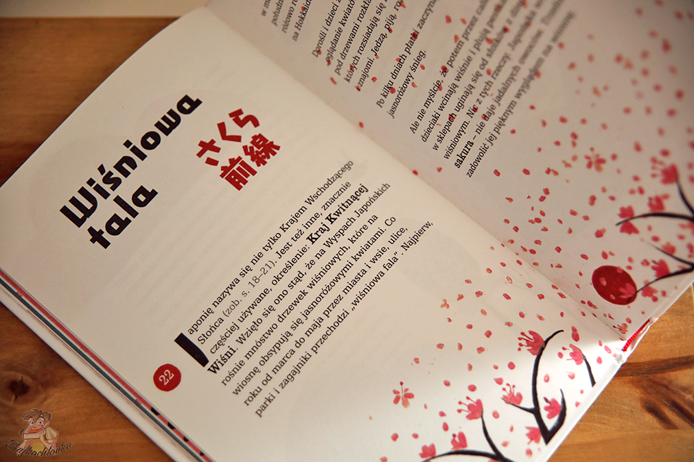 Ogromnie rozśmieszyło mnie stwierdzenie ,,daj dzioobu”, czyli fonetyczna wymowa polskiego ,,wszystko w porządku”. Trzeba przyznać, że w ten sposób byłoby naprawdę łatwo zapamiętać mnóstwo wyrażeń. W tej książce znajdziecie bowiem kwestie powszechnie znane jeżeli mowa o Japonii, czyli np. Hanami – święto zakwitania drzew wiśniowych, ale również mniej oczywiste – jak obowiązkowa kąpiel przed… wejściem do wanny!