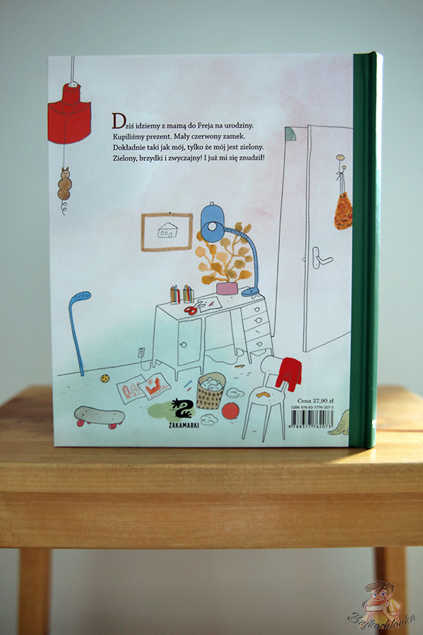 W ostatniej nowości od Wydawnictwa Zakamarki, przedstawia się właśnie sytuację z życia kilkulatka, który zaraz wybiera się na przyjęcie urodzinowe swojego kolegi. Wspólnie z mamą zadecydował, że podaruje mu nowy czerwony zamek. Sam ma zielony. Chłopiec stwierdza jednak, trzymając starannie zapakowany prezent, że jego… już mu się znudził.