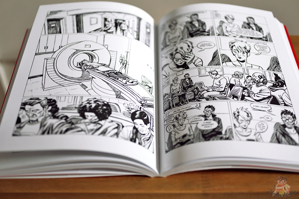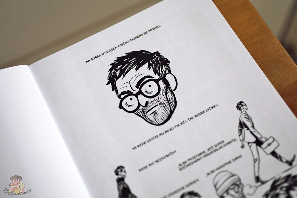 I trochę tak czułam, czytając go. Rysownik (czy ten rzeczywisty czy też jego alter ego) ma pewien problem. Nie potrafi zdecydować się, co powinien teraz stworzyć. Żyje w bańce, uważając się za kogoś w trudnym położeniu. Użala się nad sobą i kondycją świata, ale sam niewiele robi, żeby to zmienić. Nawet chorobę żony, która powinna go wzruszyć, bo przecież ją kocha, wykorzystuje jako zajmujący materiał do swojego komiksu.