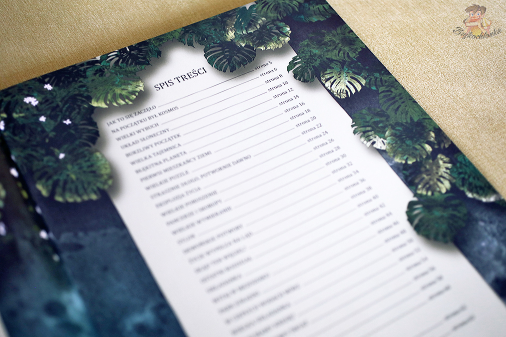 Widać, że jest to lektura, w którą włożono sporo pracy. Niemal 30 mini rozdziałów opisuje Wielki Wybuch, pojawienie się pierwszych oznak życia na Ziemi, wpływ tlenu na organizmy, niezwykłe zwierzęta sprzed setek tysięcy lat. Dowiadujemy się czym charakteryzowała się dana era czy okres, kiedy pojawiły się dinozaury i w jaki sposób wyginęły.