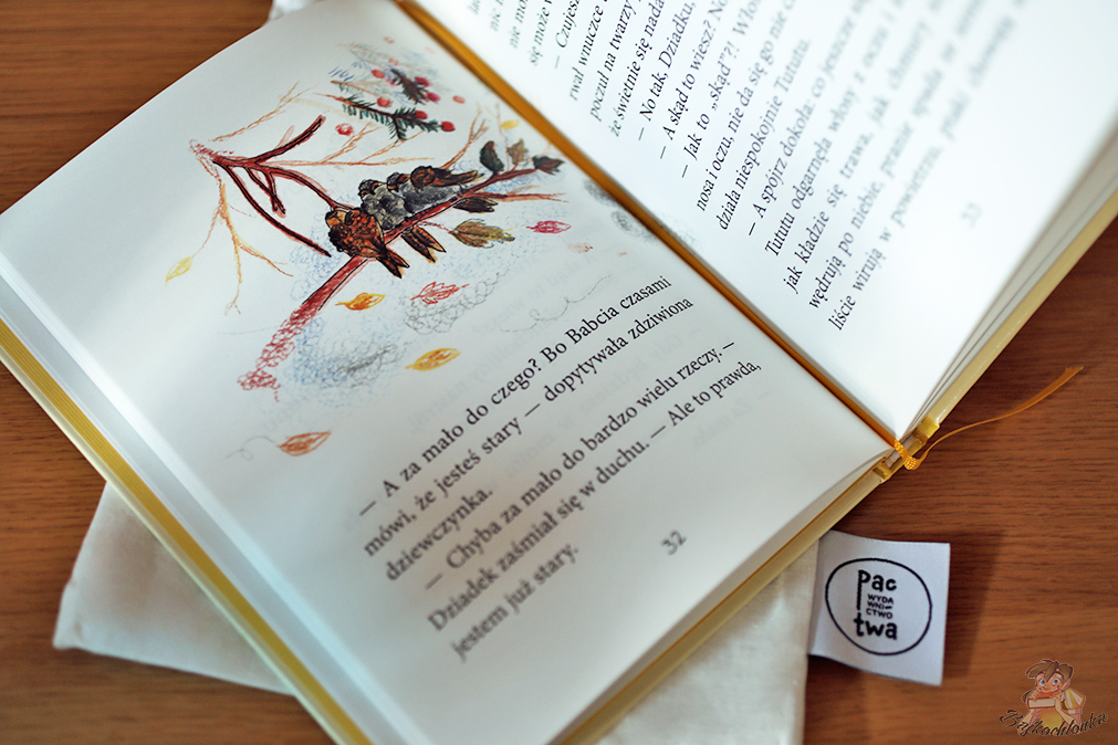 Sama książka jest przykładem mądrej lektury, której nie potrzeba pełnej napięcia akcji, żeby wciągnąć czytelników na dobre. Szczerze mówiąc cała seria kojarzy mi się z cyklem o żyrafie Bibi z Leśnego Zakątka. Żyrafa nawet pojawia się w drugiej części Tututu! Tuż obok, wydawać by się mogło, myśli przewodniej całego tomu, czyli latania. Główna bohaterka wraz z bliskimi często porusza tematy nieba, wiatru i wznoszenia się w chmury. Doskonale podkreślają one charakter jesieni, sprawiając, że każdy oprócz obserwowania kołyszących się na wietrze złotych liściach, będzie także otulał się kocykiem i grzał stopy przy kominku lub kaloryferze.