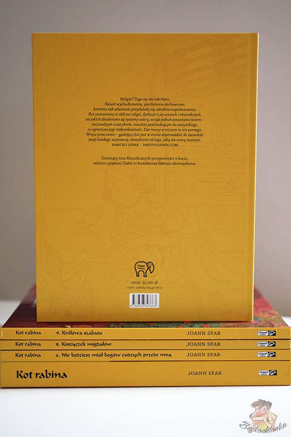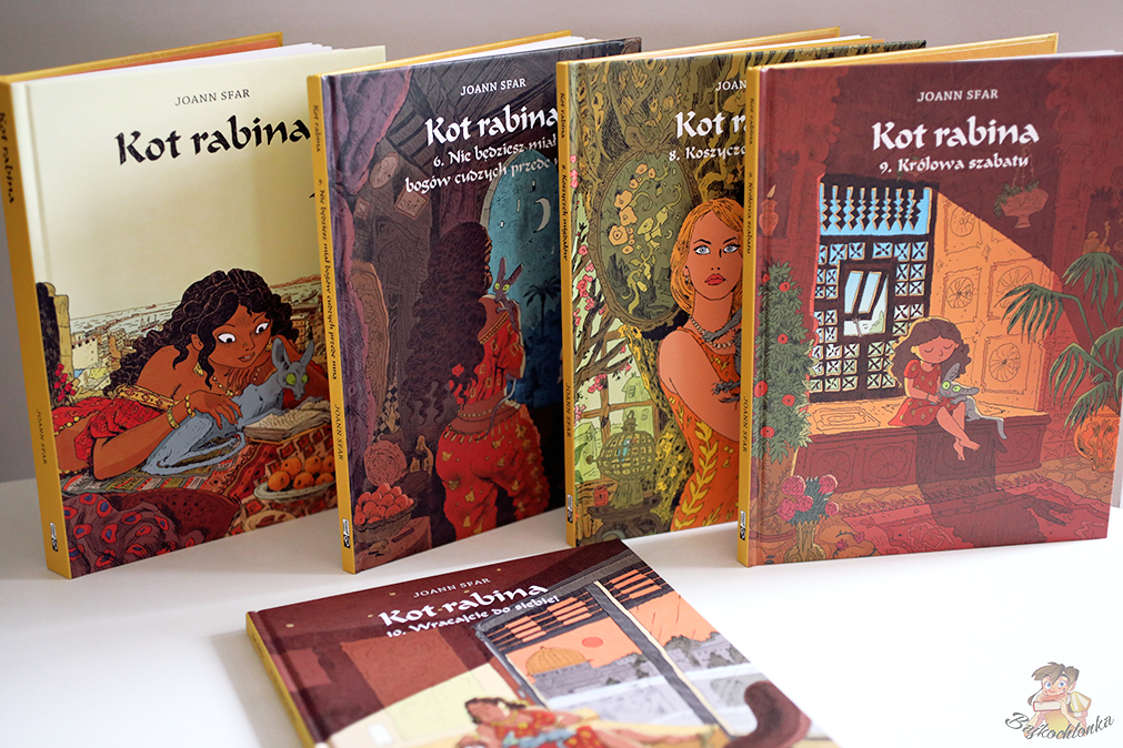 To już dziesiąty – DZIESIĄTY album z serii ,,Kot Rabina”! Mam wrażenie, że poznałam tę serię wczoraj, a tak naprawdę minęło już kilka lat, podczas których towarzyszy mi gadający kot oraz błyskotliwy obraz nieco wykrzywionej, algierskiej rzeczywistości.