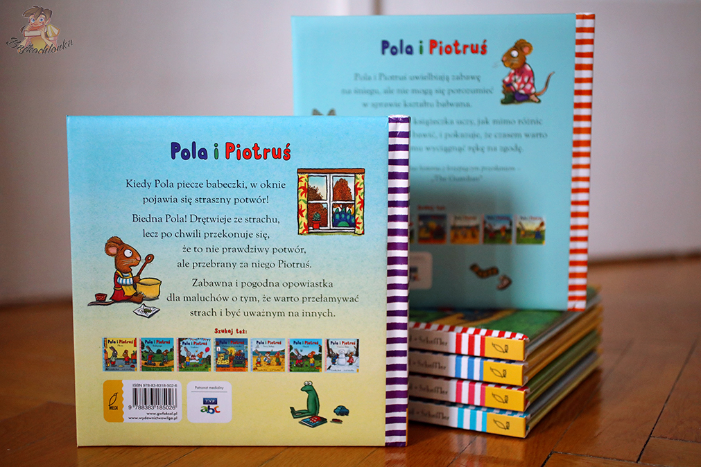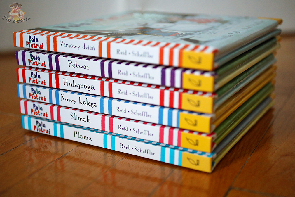 Na wieść o nowych ,,Polach i Piotrusiach” zawsze zacieram z zadowoleniem ręce! Nie tylko ja się zresztą cieszę – to jedna z ulubionych serii w naszym domu, czytana o każdej porze dnia (dlatego tak trudno skompletować całą do zdjęć!).