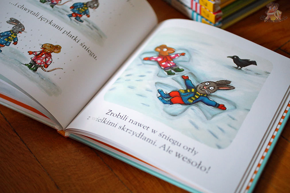 Przepiękne ilustracje! Niespotykane zbyt często w polskich książeczkach. Potwierdzam – świetne na każdą porę dnia i na każdy moment!