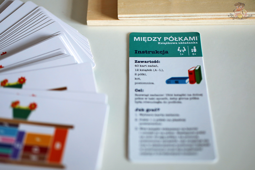 ,,Między półkami. Książkowa układanka” to pozycja kilku twórców z opracowaniem graficznym Orita Zohara. To bardzo prosta w założeniach gra, która polega wyłącznie na odpowiednim… ułożeniu klocków w kształcie książek, spełniając tylko kilka istotnych zasad.