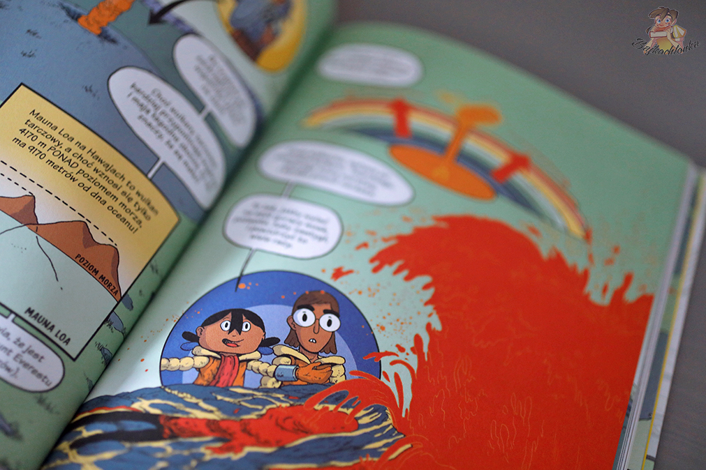 Autorem pozycji o wulkanach jest Jon Chad, którego możecie już kojarzyć z tego samego cyklu, ale z tytułu Układ słoneczny. Nasze miejsce w kosmosie. Swój wkład w tę pozycję miała także Sophie Goldstein, która odpowiadała za kolorowanie rysunków.