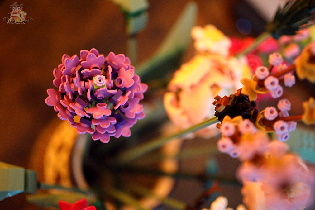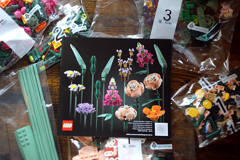 Składa się on z 15 modeli, które można zbudować z 756 elementów. Mamy tutaj klasyczne, herbaciane róże, parę lwich paszczy, lawendę, astra, stokrotki, liście czy ozdobne gałązki. Wysokość LEGO-roślin jest zróżnicowana pod kątem wysokości. Zestaw nie zawiera jednak wazonu, dlatego trzeba mieć swój, żeby odpowiednio skomponować kwiaty.