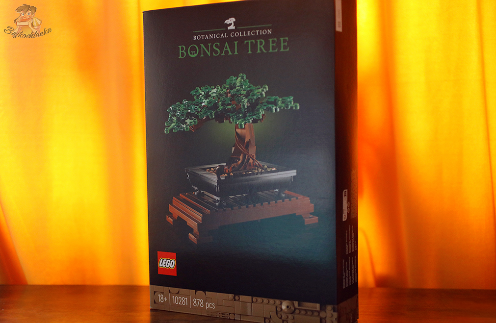 Pojedynek postanowiłam rozpocząć od LEGO Botanical Collection. Drzewko bonsai. 10281. Zestaw składa się z 878 elementów (ale dużą część z tej liczby zajmują okrągłe, płaskie, małe płytki) i po złożeniu otrzymujemy tytułowe drzewko, na stylizowanym na drewniane, podwyższeniu w czarnej doniczce, z usypaną wewnątrz ziemią, właśnie ze wspomnianych elementów LEGO.