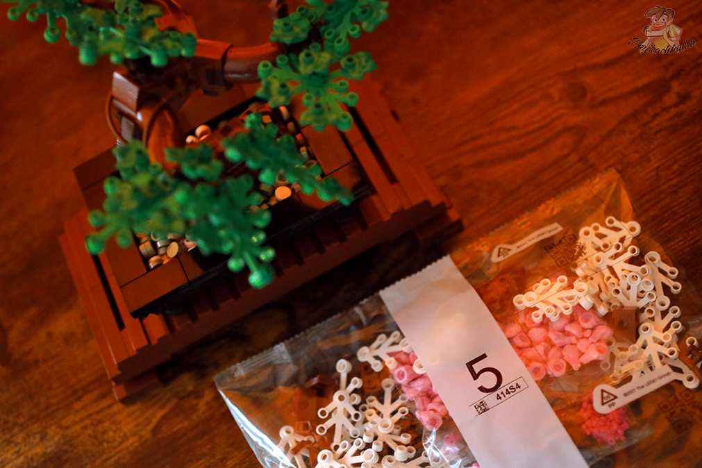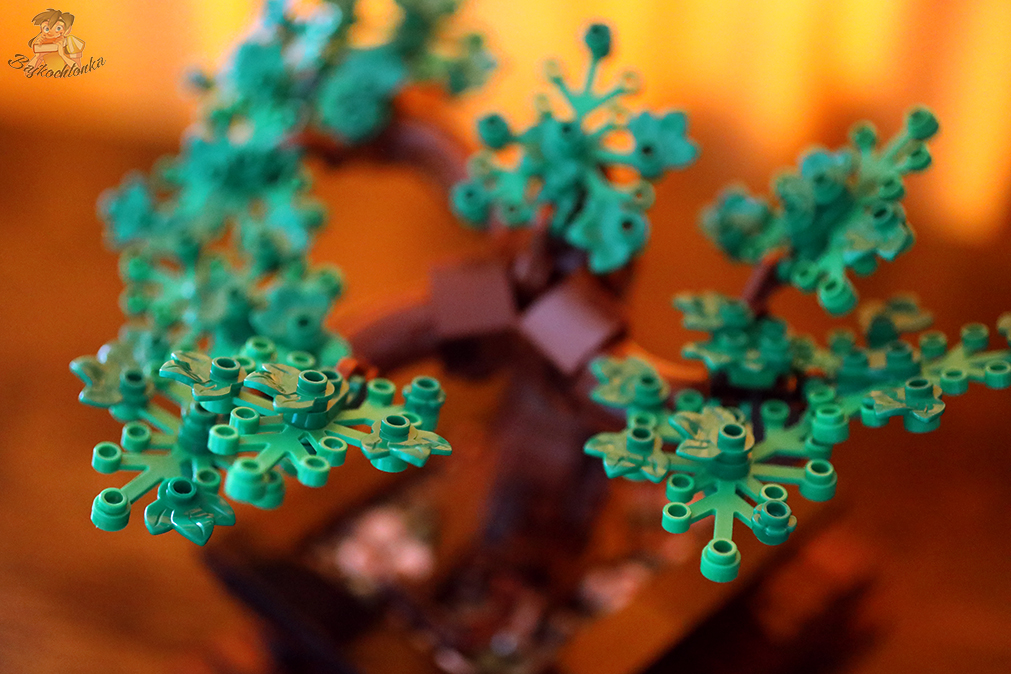 Dużym urozmaiceniem są dwie odsłony modelu. Można zdecydować się na klasyczny wygląd, z zieloną szatą lub wybrać wiosenne, kwitnące drzewko bonzai w szacie różowo-białych elementów. Ze względu na porę roku, w której piszę tę recenzję, postawiłam na klasyczną wersję, ale na wiosnę na pewno wypróbuję inny wariant kolorystyczny.