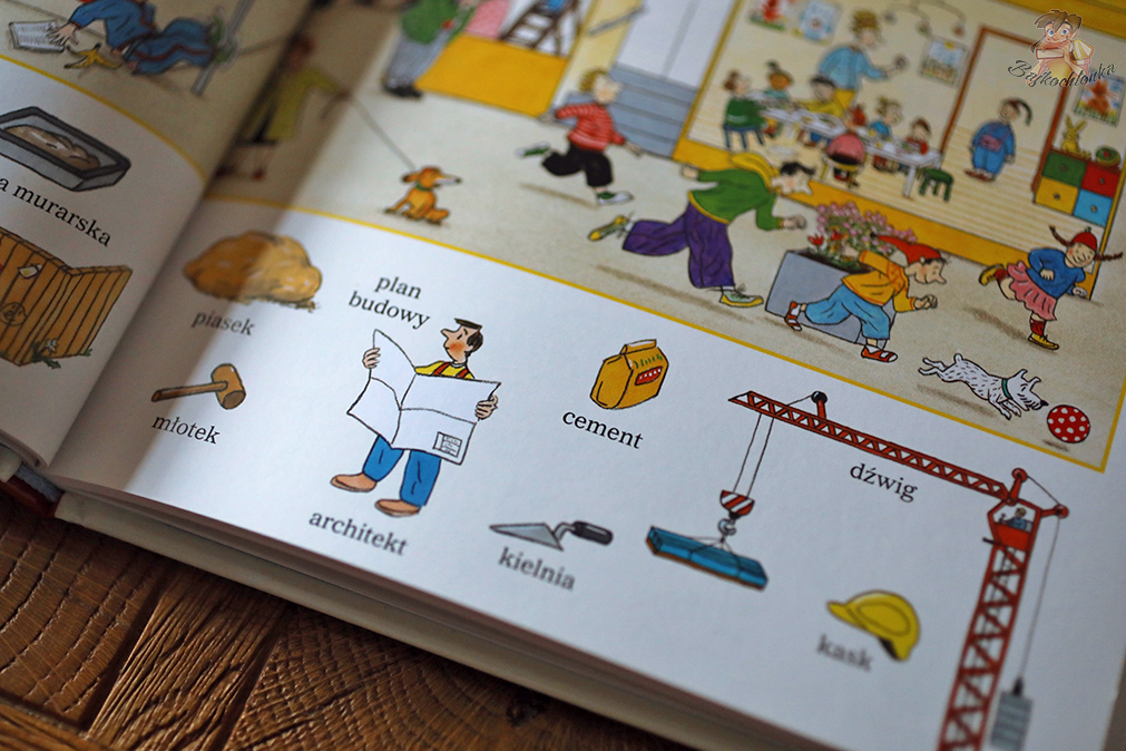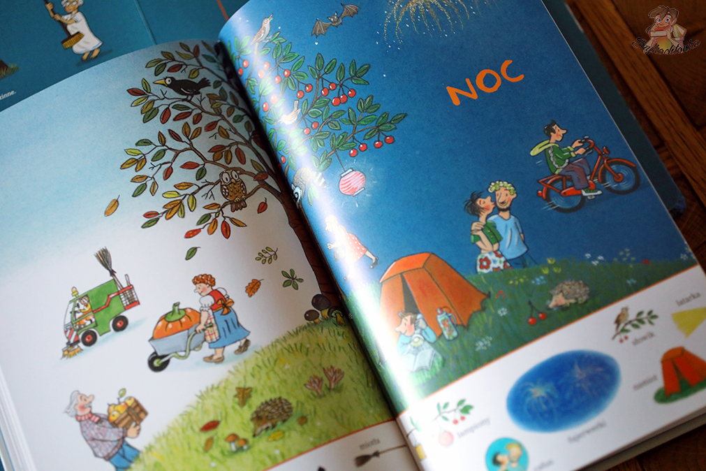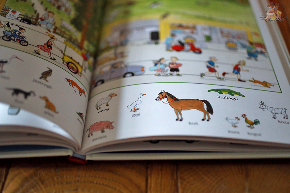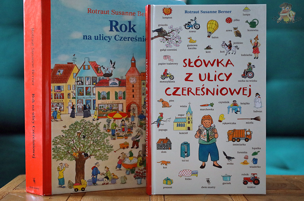 Słówka z ulicy Czereśniowej mogą więc poszerzać dziecięcą znajomość słownictwa, ale także stać się zabawą w odnajdywanie obiektów na ilustracjach. Nieco mniejszy format niż w dużej kartonówce tej serii, zupełnie nie przeszkadza cieszyć się szczegółowością obrazków.