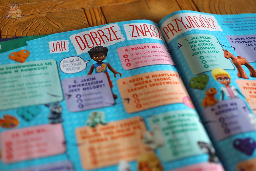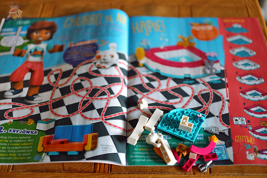Poza tym, w numerze czeka na nas komiks z ucieczką zwierzaków ze schroniska, sporo łamigłówek, podwójny plakat, kolorowanki, quiz, gry, a nawet szablon z uszkami – do zrobienia własnej ozdoby na włosy. To pełen słodyczy magazyn dla najmłodszych miłośników klocków LEGO.