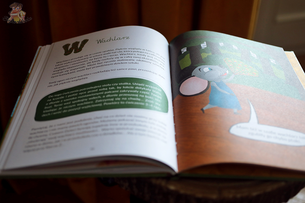 Każde hasło rozpoczynające się na wybraną literę alfabetu uzupełnione jest propozycją aktywizującą dziecko. Czasami zachęcane jest ono do ćwiczenia oddechowego, pobudzającego wyobraźnię czy też nawet – pozwalającego lepiej poznać siebie, swoje preferencje, a tym samym: lepiej rozumieć świat.