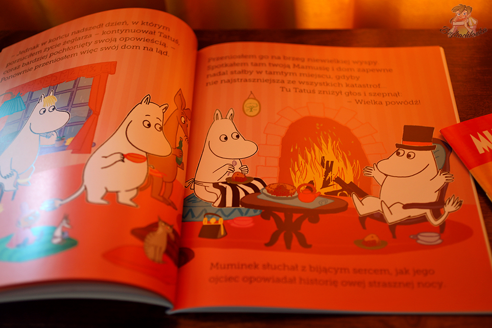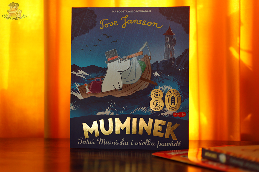 To jedno z tych opowiadań z uniwersum, które prawdopobnie jest znane większości starszym czytelnikom. W ramach cyklu Opowiadania z Doliny Muminków ukazało się już sporo tytułów. Ze względu jednak na tegoroczny jubileusz, wydanie Muminek, Tatuś Muminka i wielka powódź ma piękne, złote uszlachetnienia na okładce oraz dodatkowy symbol z liczbą 80 tuż powyżej.