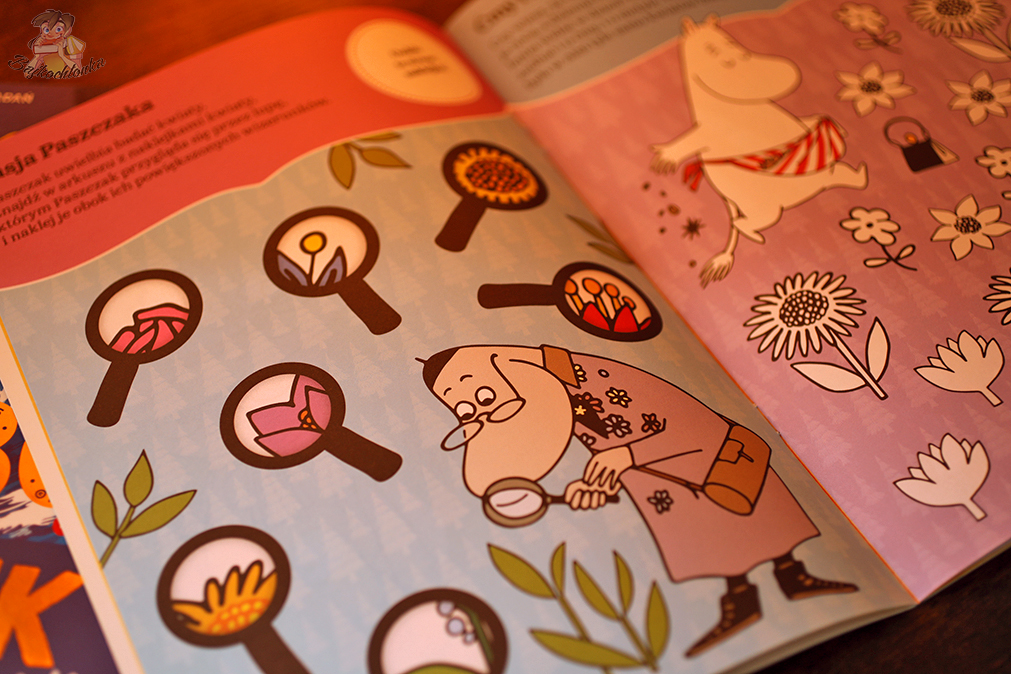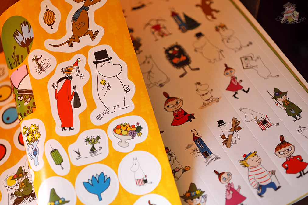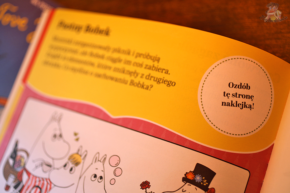 Oczywiście, prawdziwym rarytasem są tutaj tytułowe naklejki, które można naklejać w wyznaczonym do tego miejscu w książce lub po prostu wykorzystać na własny użytek, otaczając się ukochanymi bohaterami z Muminków.