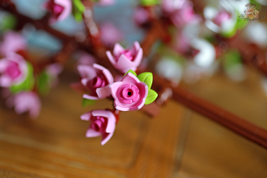 Ich układanie w pojedynkę może być trochę monotonne ze względu na wiele znajdujących się w zestawie drobnych, takich samym kwiatów. Kiedy jednak siadamy do LEGO Kwiaty wiśni 40725 w dwie osoby i każda ma do złożenia po jednej gałązce, zabawa staje się dużo przyjemniejsza.