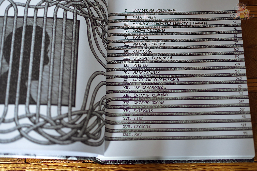 Przyznam, że lektura Wypadek na polowaniu to literacko-wizualna uczta. Filozoficzne doktryny i literacka klasyka przeplatane tu są ciężkim, więziennym życiem. Życie nastolatka ukazane w lustrzanym odbiciu do życia jego ojca.