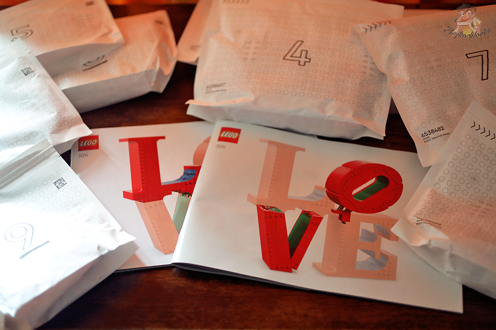 Wielkim atutem LEGO LOVE 31214 jest przygotowanie go w taki sposób, żeby mogły składać go jednocześnie dwie osoby. 791 elementów, czyli cztery litery, to łącznie jakaś maksymalnie godzina ,,roboty”. Muszę jednak podkreślić, że druga część instrukcji, czyli ,,O” i ,,V” są znacznie bardziej złożone konstrukcyjnie niż ,,L” i ,,E”.