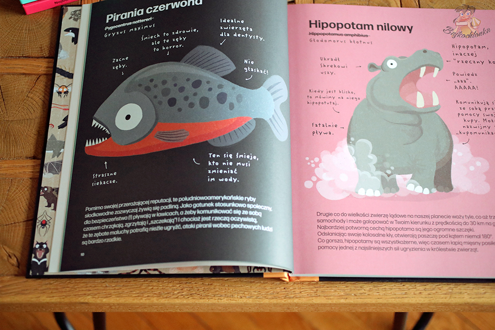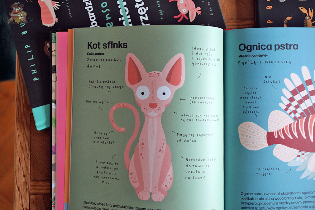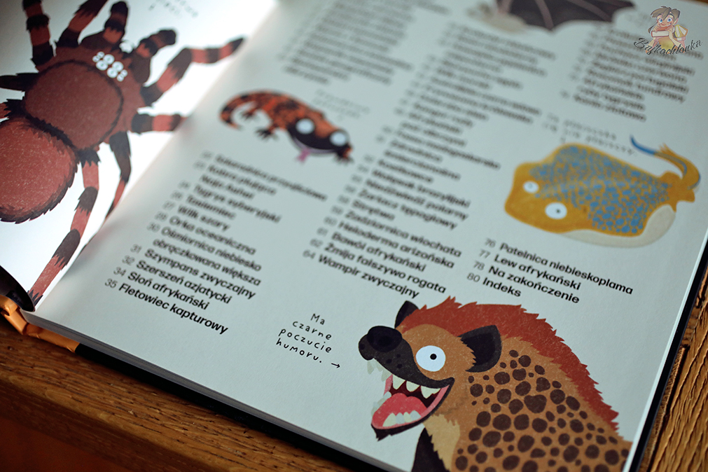 Każda strona i rozkładówka to mnóstwo nowych ciekawostek o zwierzakach. Autor do swojej kolekcji wybrał m.in. owady, ssaki, ryby, bezkręgowce.