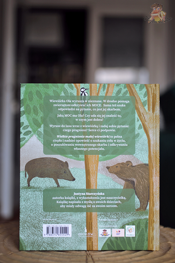 Wielkie pragnienie małej wiewiórki to pełna empatii, wrażliwości i uważności książka Justyny Starczyńskiej – nauczycielki, która stara się przekonać najmłodszych, że prawdziwą odwagą jest słuchanie własnych potrzeb i podążanie za intuicją oraz sercem.