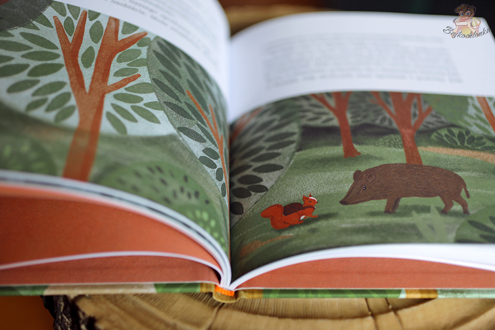 Wiewiórka pakuje więc niewielki plecak i rusza leśną ścieżką. Po drodze spotyka mnóstwo zwierząt, z którymi, dzięki otwartości, uważności oraz cierpliwości – udaje jej się nawiązać bliską relację, a następnie pomóc im w odnalezieniu ich szczęścia.