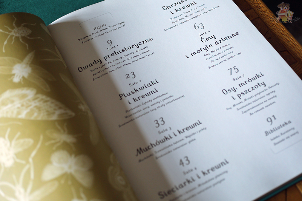 Ta piękna i mądra pozycja składa się z kilku dużych rozdziałów. Począwszy od owadów prehistorycznych, po coraz bardziej złożone organizmy, inspirujące chrząszcze, zachwycające motyle czy niezwykle użyteczne pszczoły oraz mrówki.