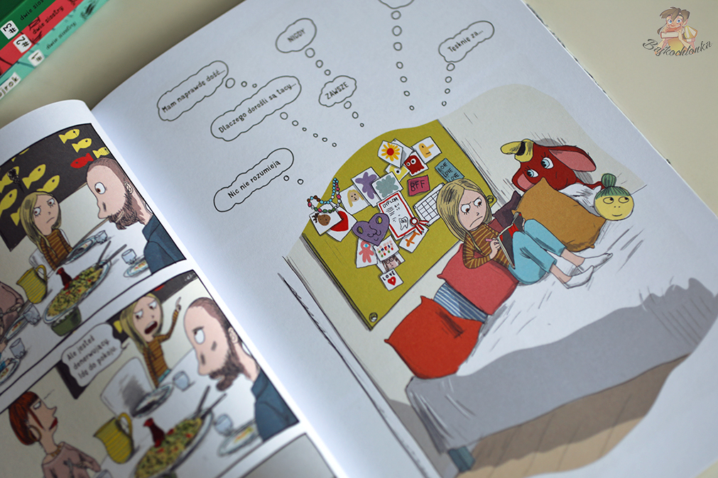 Komiks w sposób wrażliwy i jednocześnie wzbogacony o subtelne poczucie humoru, opowiada historię nastolatki, z którą bardzo łatwo utożsami się wiele rówieśniczek (i wielu rówieśników). To współczesne życie młodej bohaterki z patchworkowej rodziny, uczącej się lepszego rozumienia siebie oraz innych.