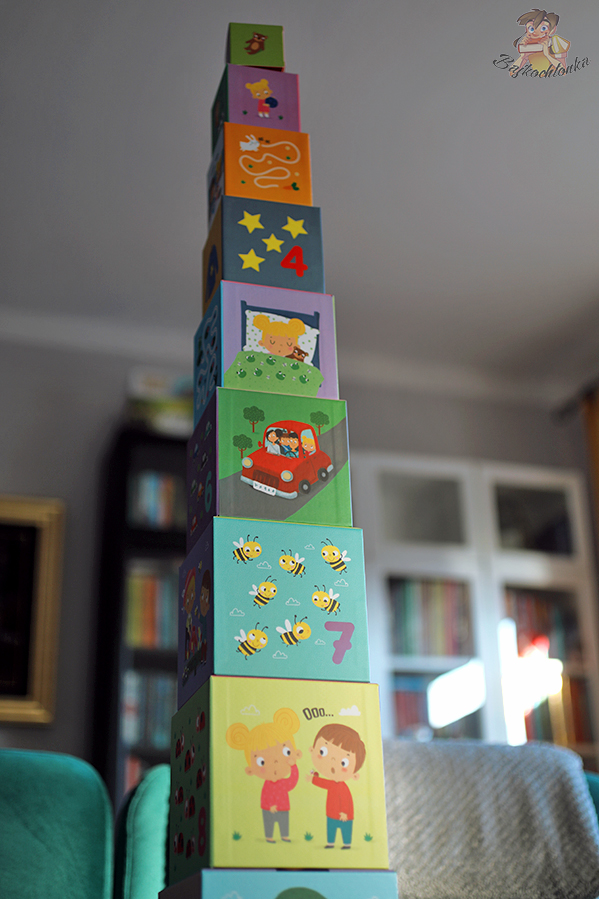 Pudełka wykonano z wytrzymałej tekturki, która jednocześnie jest bardzo lekka. Mimo więc, że mogą one utworzyć ponad 105 cm wieżę – po (jakże satysfakcjonującym!) przewróceniu, dalej są bezpieczne i odpowiednie dla najmłodszych.