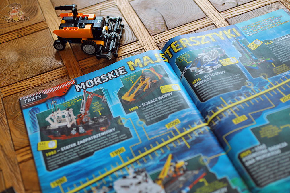 Co też od razu mi się spodobało – w środku znajdują się wywiady z twórcami klocków LEGO, nawiązania do wybranych zestawów jak i porównywanie ich z prawdziwymi pojazdami, czy też łamigłówki, gra oraz aż 4 plakaty.