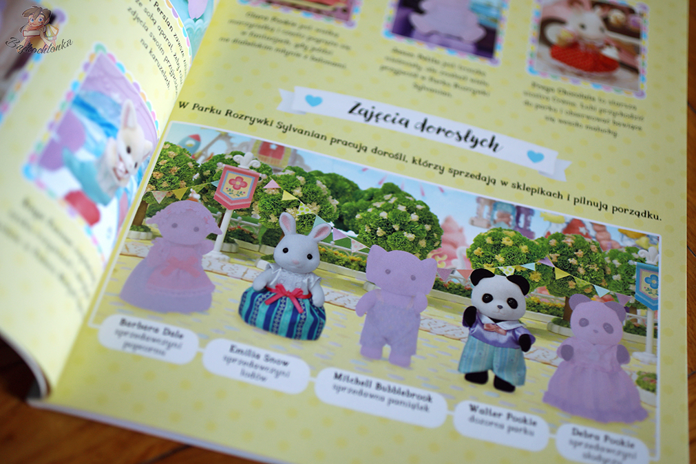 Ta pozycja ma swoją główną bohaterkę, która pełni w niej rolę kogoś w rodzaju narratora. Dzięki temu Piknik Frei. Zadania z naklejkami rzeczywiście bardziej przypomina książkę, niż Dzień w Parku Rozrywki Sylvanian. Książka z naklejkami.