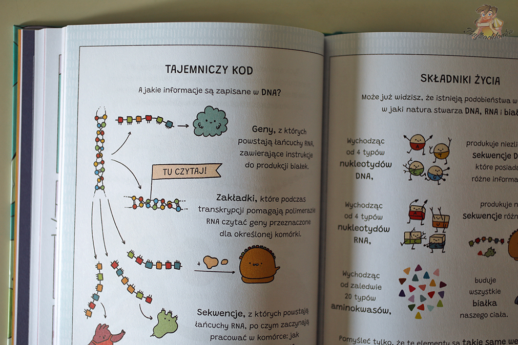 A jak opowiedzieć dzieciom oraz młodzieży o historii DNA, genetyki i naukowców, którzy odmienili nasze rozumienie życia? Najlepiej zrobić to za pomocą… obrazu! A jeszcze dokładniej – za pomocą przemyślanego, mądrze zaprojektowanego komiksu edukacyjnego, w którym wstawki fabularne przeplatają się z ilustrowanymi blokami tekstu.