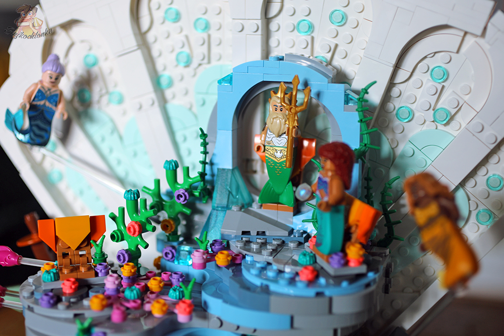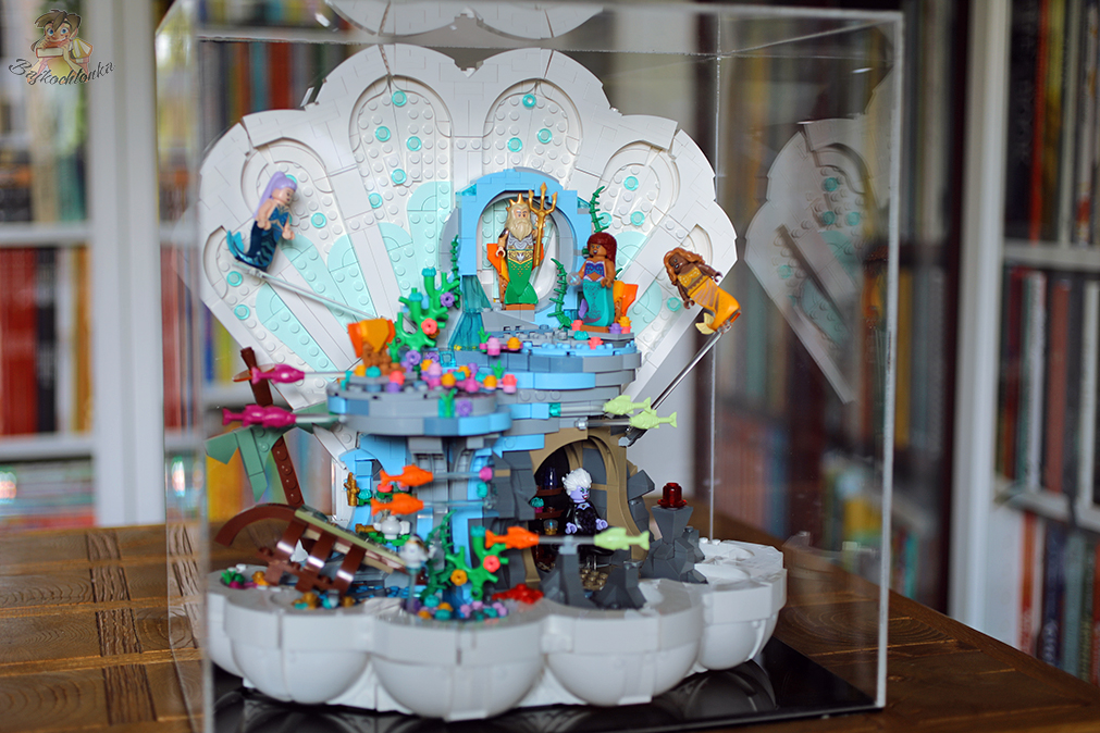 Całość LEGO Królewskiej muszli Małej Syrenki 43225 prezentuje się zjawiskowo, ale tylko z frontu. To zestaw przeznaczony zdecydowanie do eksponowania tylko z jednej strony. Uważam, że to jednak jeden z bardziej imponujących modeli – zarówno pod kątem konstrukcji, jak i minifigurek.