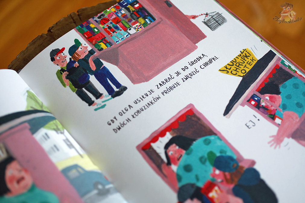 Aż do pewnego momentu. Kiedy dwóch łobuzów chce ukraść chrupki, Olga robi zbyt gwałtowny ruch i kiosk się przewraca – a wraz z nim wywraca się całe życie głównej bohaterki. Przekonuje się wówczas, że czasami do zmiany wystarczy niewielki bodziec oraz tylko trochę wysiłku.