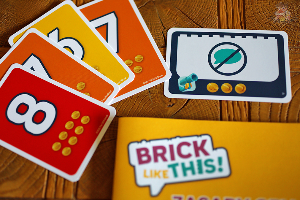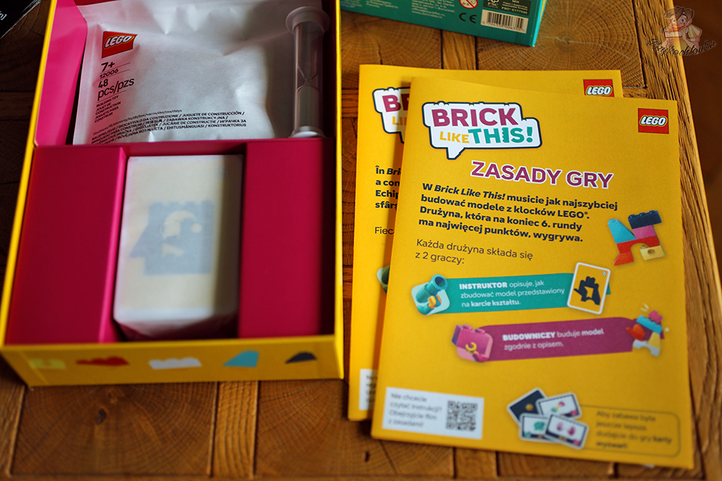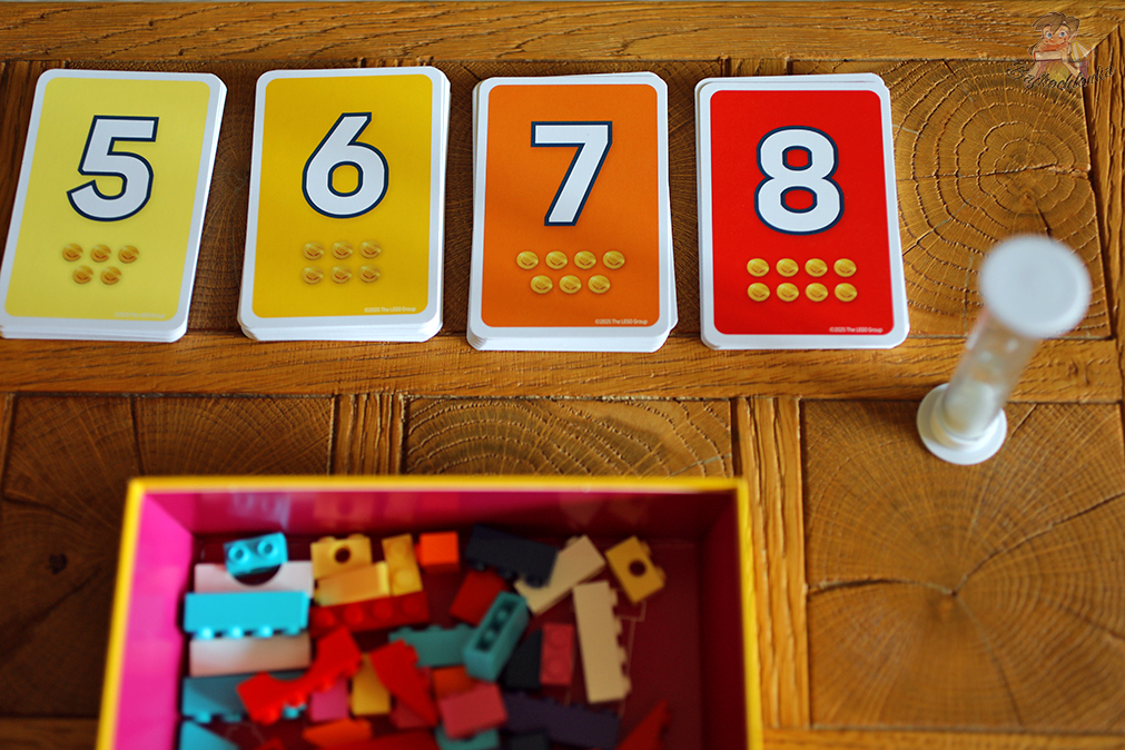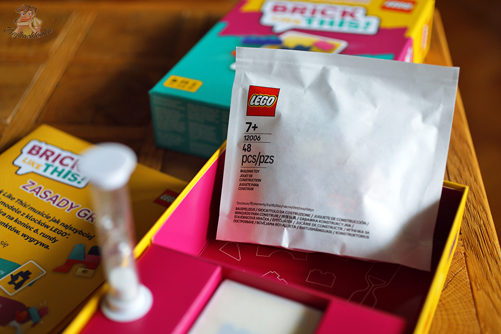 - 48 oryginalnych klocków LEGO – podstawowy element rozgrywki, używany do odwzorowywania wzorów z kart.
