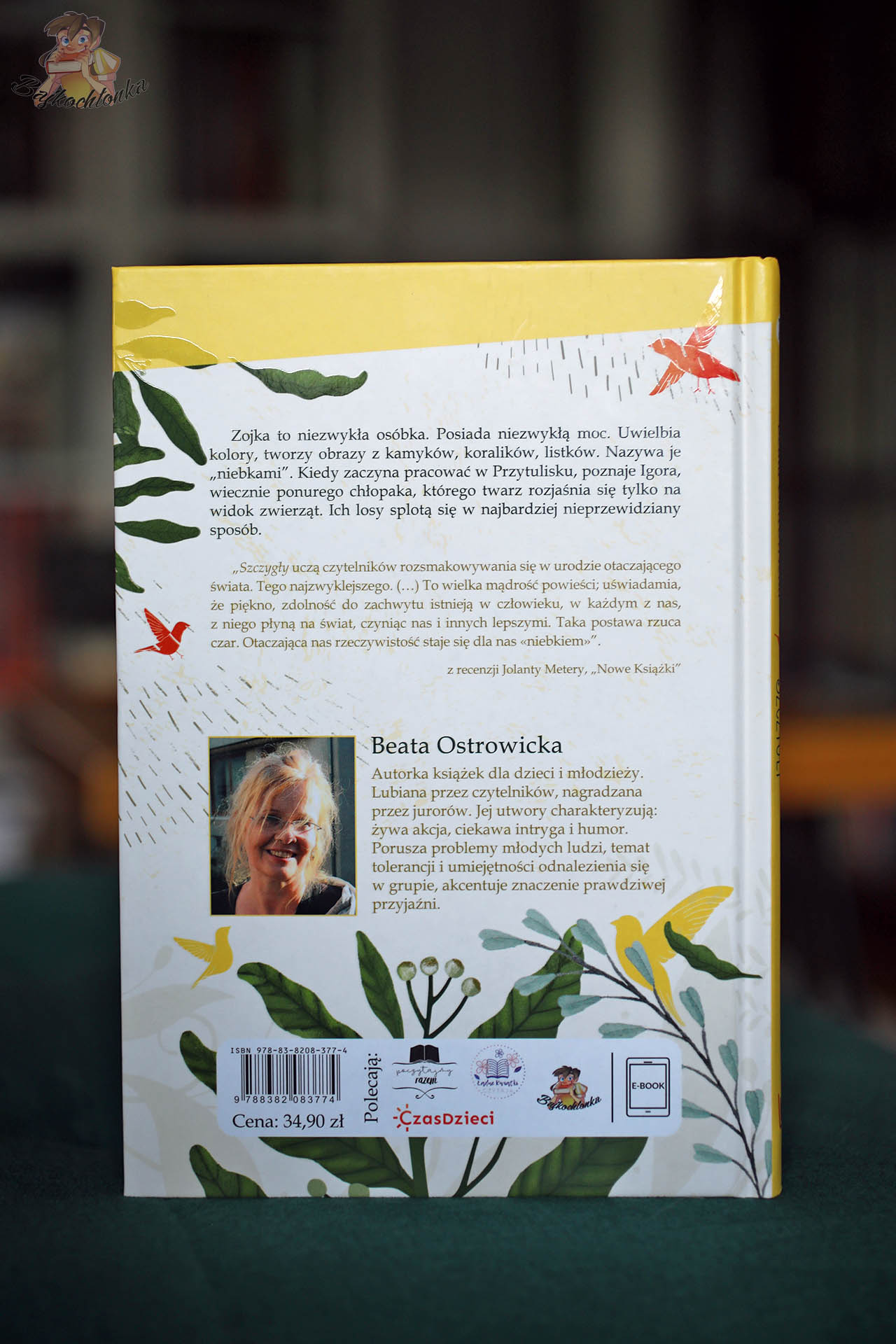 Zojka, główna bohaterka Szczygłów, to niezwykła dwunastolatka. Nie lubi zawracać sobie głowy modą (choć ma słabość do uszek na opasce) i nie do końca dba o to, co myślą o niej inni. Z uwagą obserwuje jednak otoczenie – lubi rozmawiać z owadami, puszczać statki w kałużach i tworzyć swoje małe „niebka”. Beata Ostrowicka (autorka m.in. Elementarz. Moje pierwsze czytanki) otrzymała za tekst Szczygłów wyróżnienie w konkursie im. Kornela Makuszyńskiego. Ja z przyjemnością objęłam tę pozycję swoim bajkochłonkowym patronatem medialnym.