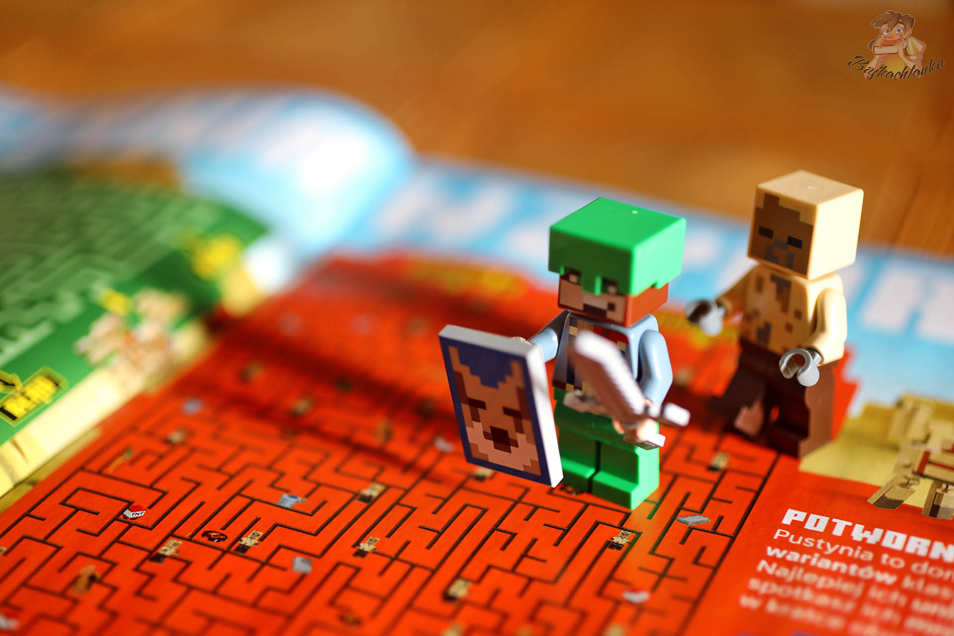 Tradycyjnie rozpoczynamy od uniwersum Minecrafta. Okładka obiecuje świetną zabawę z dwoma minifigurkami – strażnika, którego można było już otrzymać w jednym z wydań z przeszłości, ale tym razem z naprawdę interesującym dodatkiem – tarczą z nadrukowaną grafiką wilka! To jest intrygujący element, który z pewnością wpłynie na scenariusze aktywności z tymi klockami. W parze ze strażnikiem jest także posuch – dość rzadka postać.