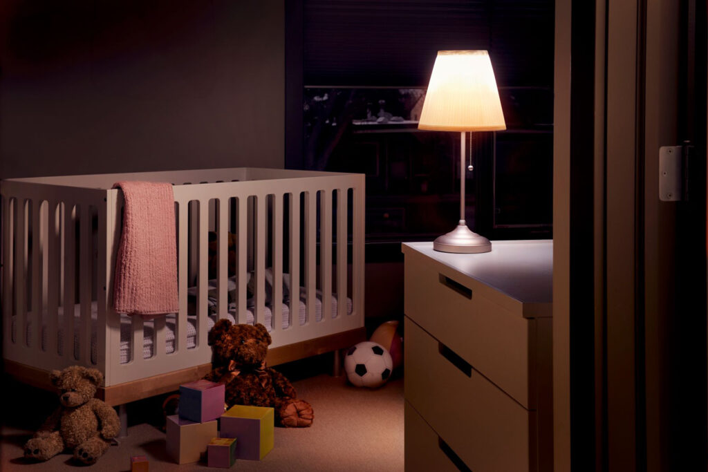Ostateczne umiejscowienie źródła światła wpływa bezpośrednio na komfort korzystania z pokoju podczas częstych, nocnych pobudek dziecka. Najlepiej, aby światło lampki nigdy nie świeciło bezpośrednio i mocno w wrażliwe oczy śpiącego w łóżeczku niemowlęcia. Postawienie lampki na komodzie lub wysokiej półce zapewnia łagodną i rozproszoną poświatę w całym wnętrzu sypialni. Zachowanie odpowiedniej odległości od szczebelków łóżeczka skutecznie zapobiega przypadkowemu strąceniu urządzenia przez ruszającego rączkami malucha.