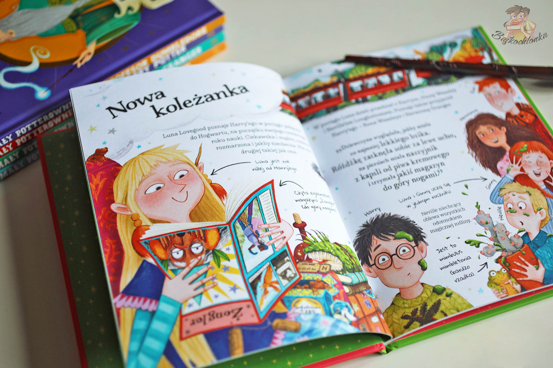 W Małym potterowniku nie znajdziecie Luny, która jest jedynie „dziwaczką z Ravenclaw”. Książka szczęśliwie unika spłycania tej postaci do roli ekscentrycznego urozmaicenia fabuły. Jej cechy – nieprzejmowanie się opinią innych, trzymanie się na uboczu, brak potrzeby zabiegania o sympatię – ukazane zostały nie jako potencjalne słabości, ale ogromna siła i atuty osobowości.