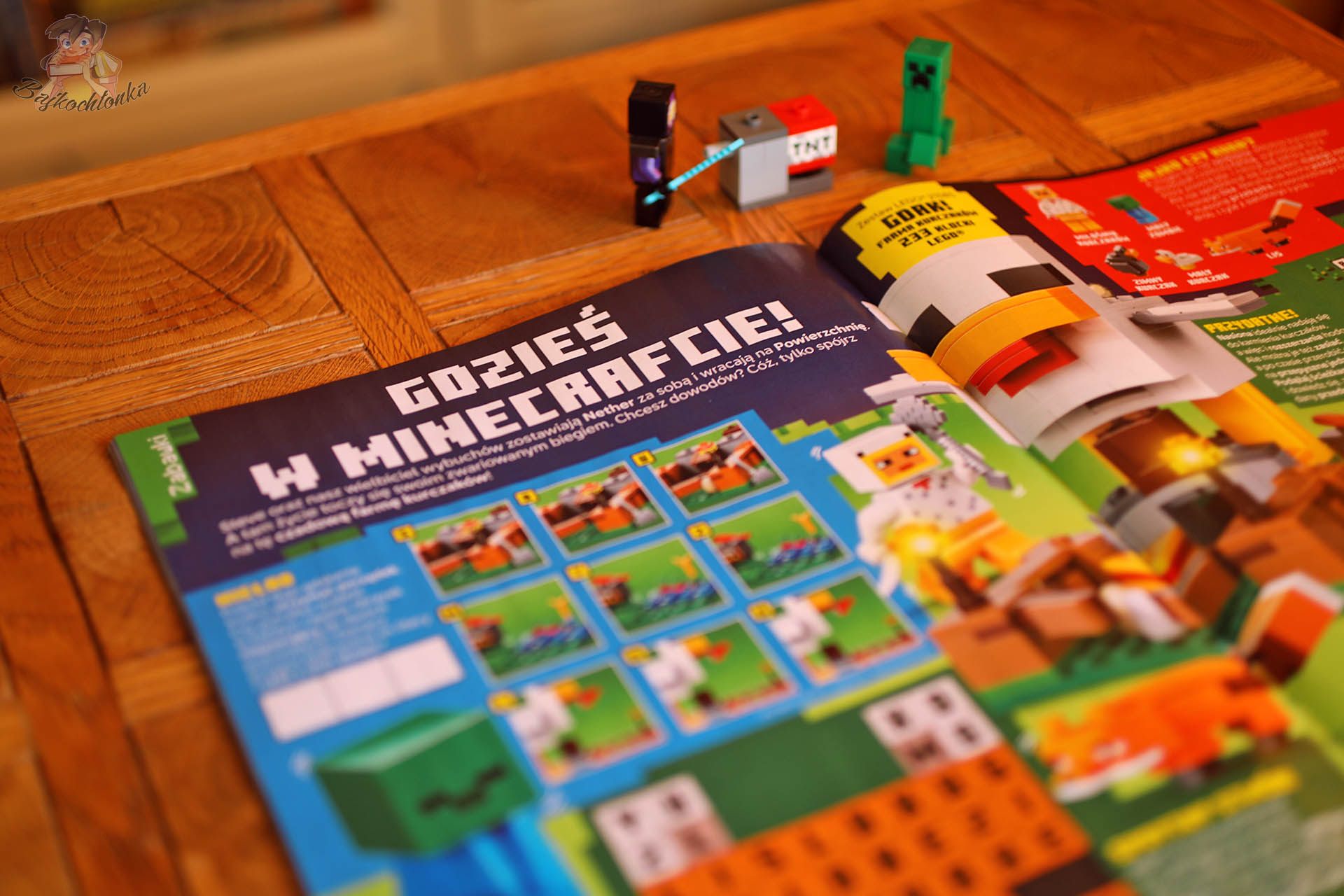 Klasycznie nasz przegląd świeżej prasówki z magazynami LEGO zaczynamy od uniwersum Minecrafta. Na pierwszy rzut oka od razu rzuca się okładkowy creeper otoczony ładunkami TNT. Jego postać pojawia się także jako minifigurka w saszetce z klockami do złożenia – wraz z mistrzem wybuchów oraz wyrzutnią TNT.