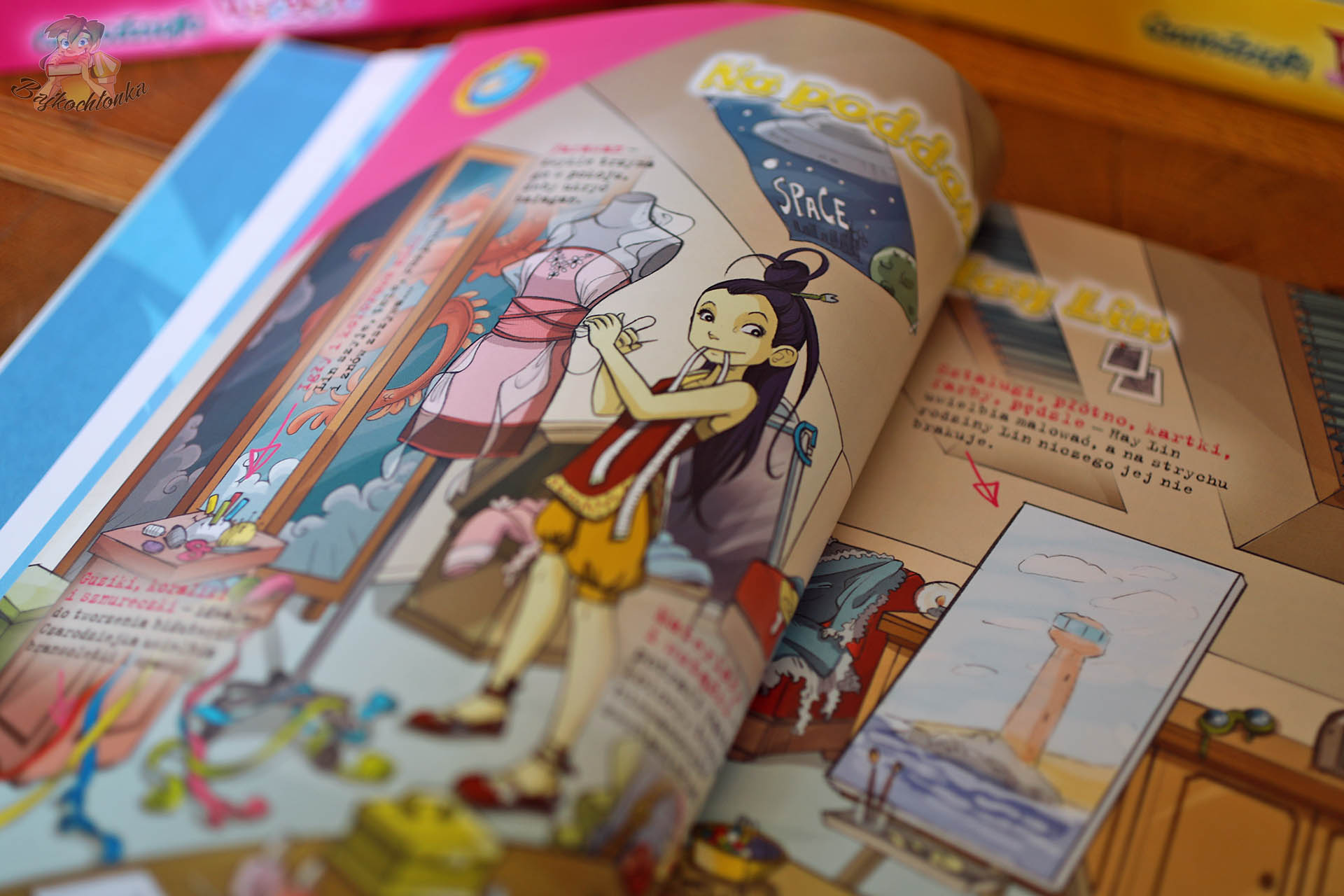 - rozkładówki budujące kontekst świata.