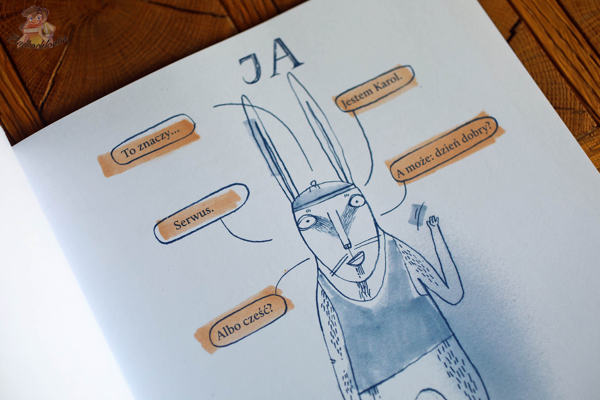 Przyjrzyjmy się teraz innej książce, zupełnie różnej od tej poprzedniej (ostrzegałam, prawda?). W przypadku Hilberta z tekstem oraz ilustracjami Bárðura Oskarssona (w przekładzie Kingi Eysturland) nie mamy do czynienia z oczywistym przesłaniem. To niepozorna objętościowo książka, która pokazuje jak wiele można opowiedzieć przy pomocy kilku zdań, prostych ilustracji oraz jednego zaskakującego pomysłu.