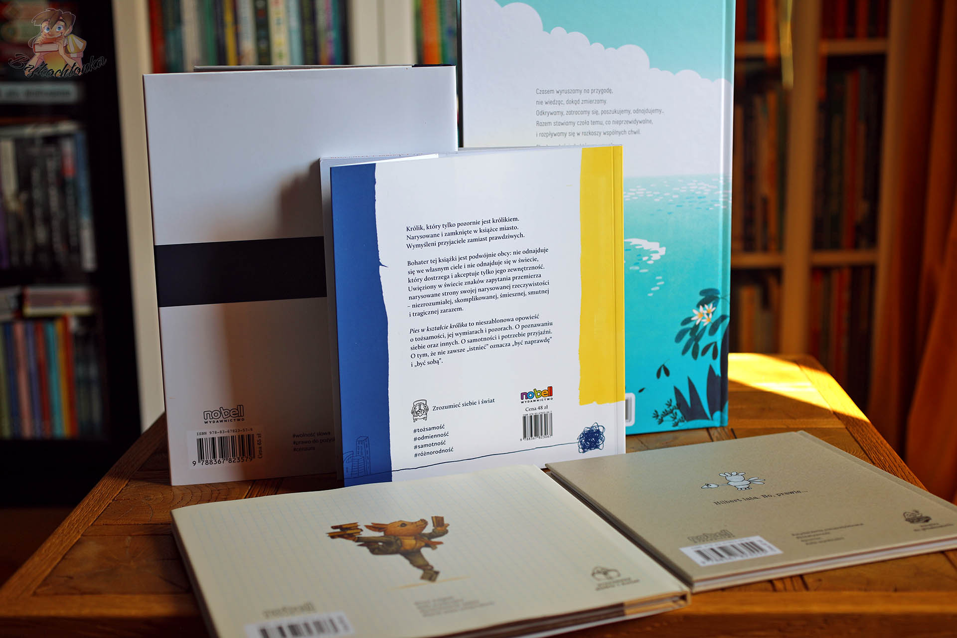 Pierwszy raz na mojej stronie – i od razu z tak liczną reprezentacją! O Wydawnictwu No Bell już wcześniej słyszałam wiele dobrego. Jeszcze więcej mówi się jednak o ich podejściu do literatury dziecięcej oraz samych książkach – odważnych, nietuzinkowych, wyróżniających się oraz zapadających w pamięci czytelników.