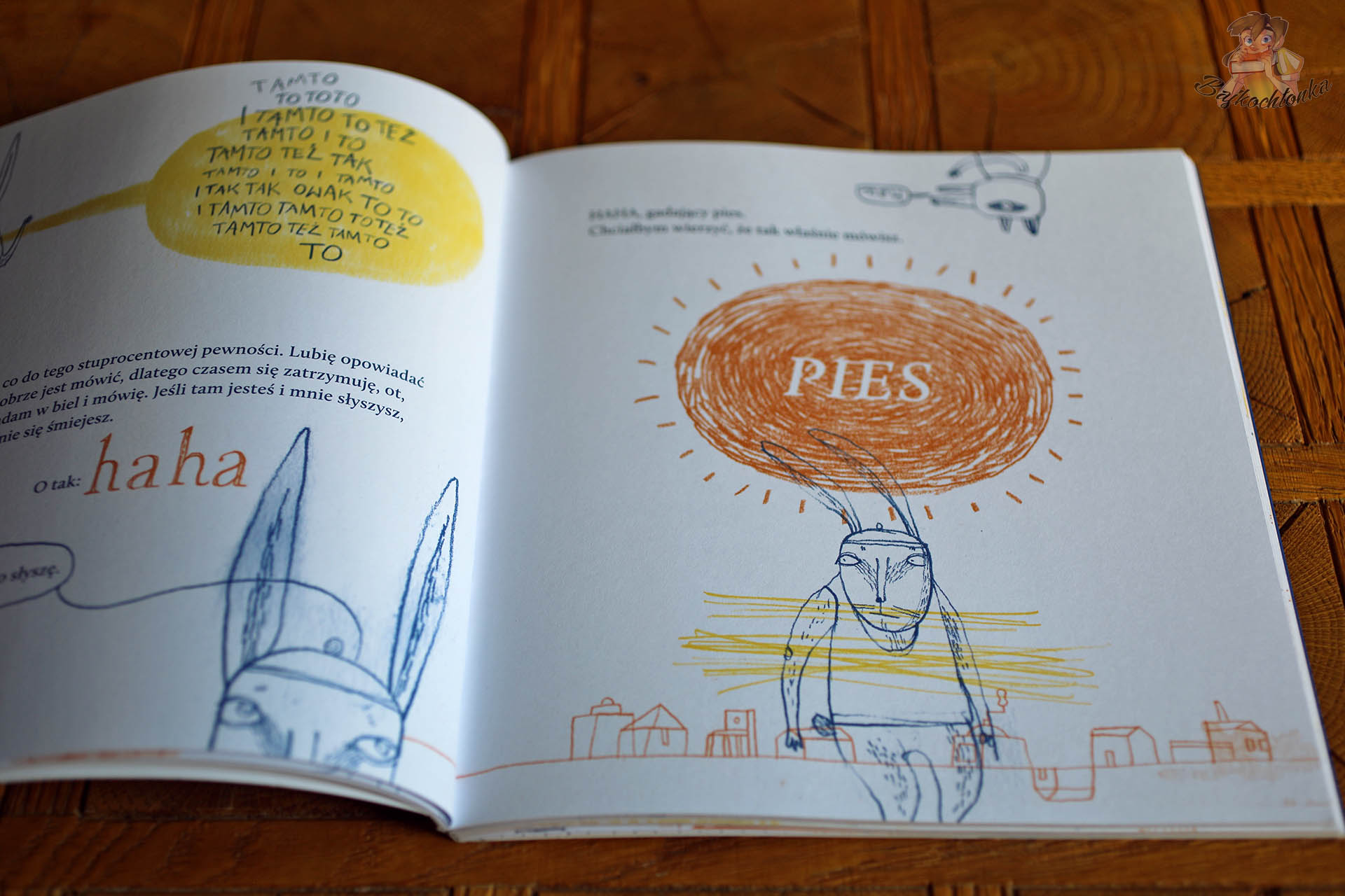 W Pies w kształcie królika ważna jest także strona wizualna: szkicowa, eksperymentalna i celowo nieoczywista warstwa graficzna, która pełni szalenie istotną funkcję – wzmacnia sens oraz ukazuje zagubienie głównego bohatera. Ta pozycja bardzo uczciwie opowiada o doświadczeniu bycia kimś „pomiędzy”. Doskonale sprawdzi się w przypadku czytelników, którzy czują się inni, odmienni od swoich rówieśników. Polecam ją odbiorcom powyżej 10. roku życia.