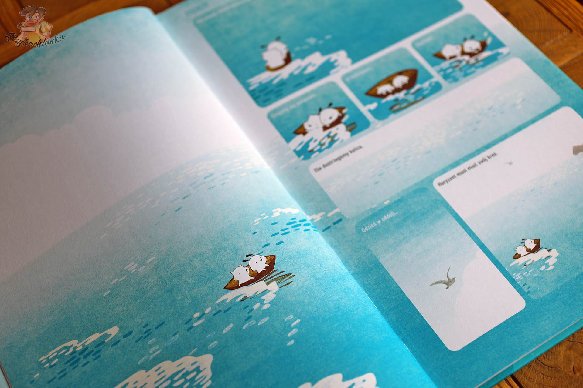 Z całego zestawienia powyższych książek, ta jest najbardziej poetycka, subtelna, rozkoszna, wypełniona motywującymi treściami oraz dająca poczucie bezpieczeństwa. Po falach Sandrine Kao, w przekładzie Karoliny Kulpy, to bogaty w symbole komiks, który w uroczych, słodkich kadrach skrywa opowieść o zagubieniu, wewnętrznej podróży i odzyskiwaniu sensu po doświadczeniu, które zachwiało dotychczasowym porządkiem.