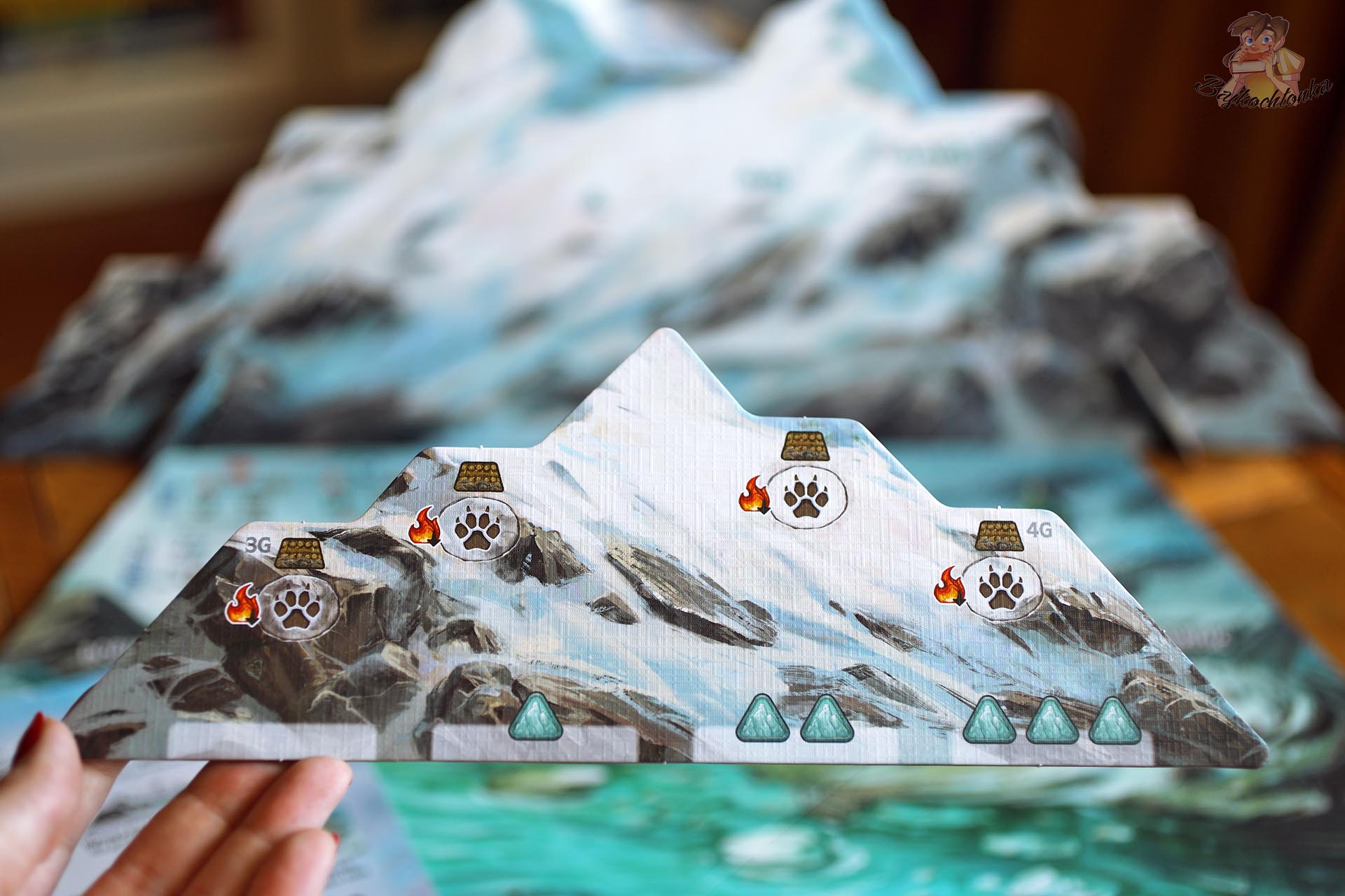 Ogień przydaje się także do rozpalania ognisk oraz zjednywania sympatii wielkich mieszkańców szczytu góry. Góra jest bowiem elementem, który znacząco wysuwa się na pierwszy plan w Everdell: Srebrnoszrony. W pudełku znajdziecie bowiem wielki, trójwymiarowy model do złożenia – z miejscem na 4 pionki stosów sygnałowych. Na samym szczycie przewidziano z kolei miejsce na stos żetonów śniegu (bardzo pomysłowe!).